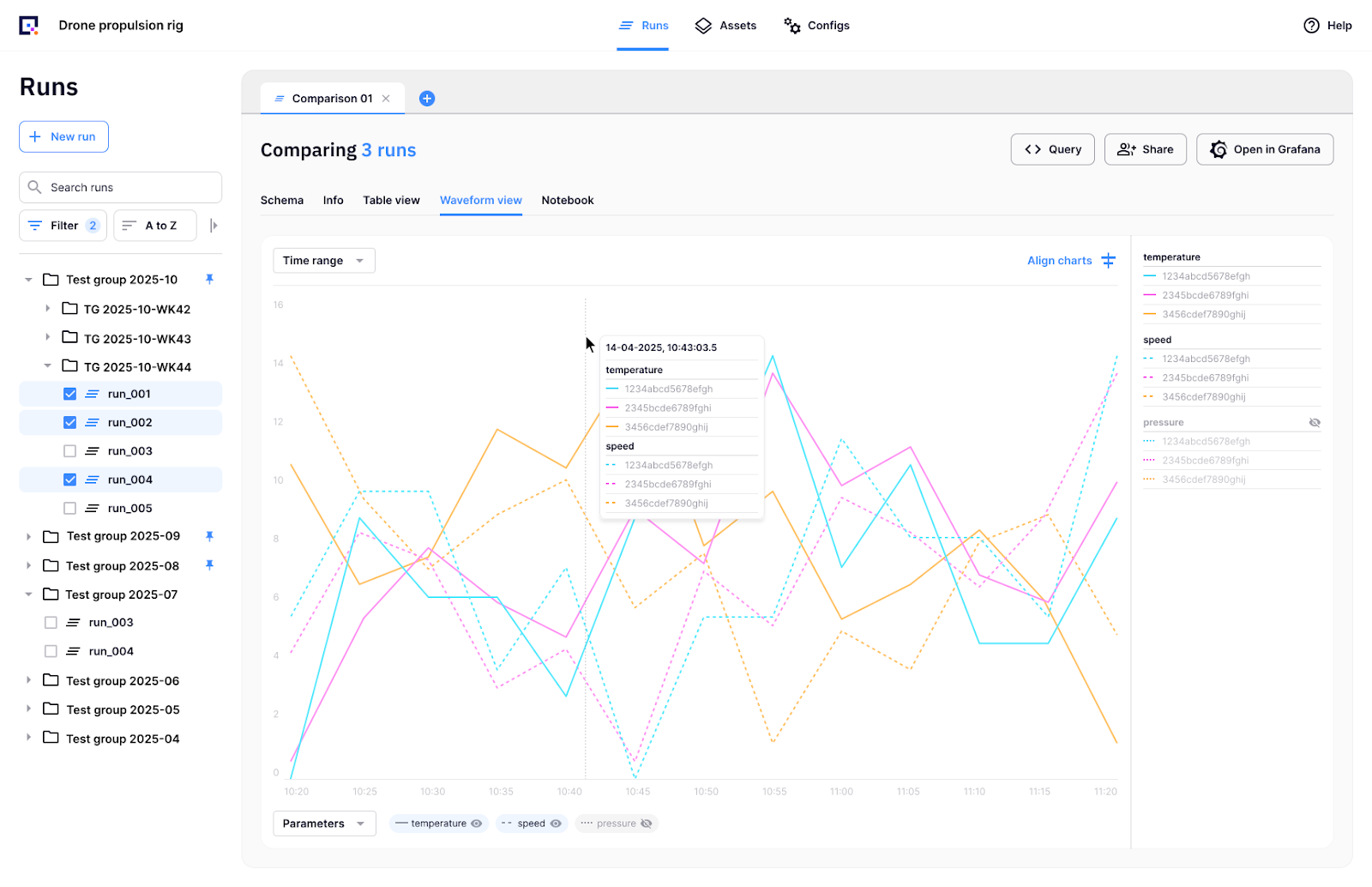 This saves a tremendous amount of time. In a typical R&D workflow, this enrichment is a manual, after-the-fact process. An engineer would have to finish the test, export a giant log file, and then later hunt down the original configuration files to correlate assets and settings to the test outcomes—a real drain on valuable engineering time. With this real-time join, the data is born ready for analysis.