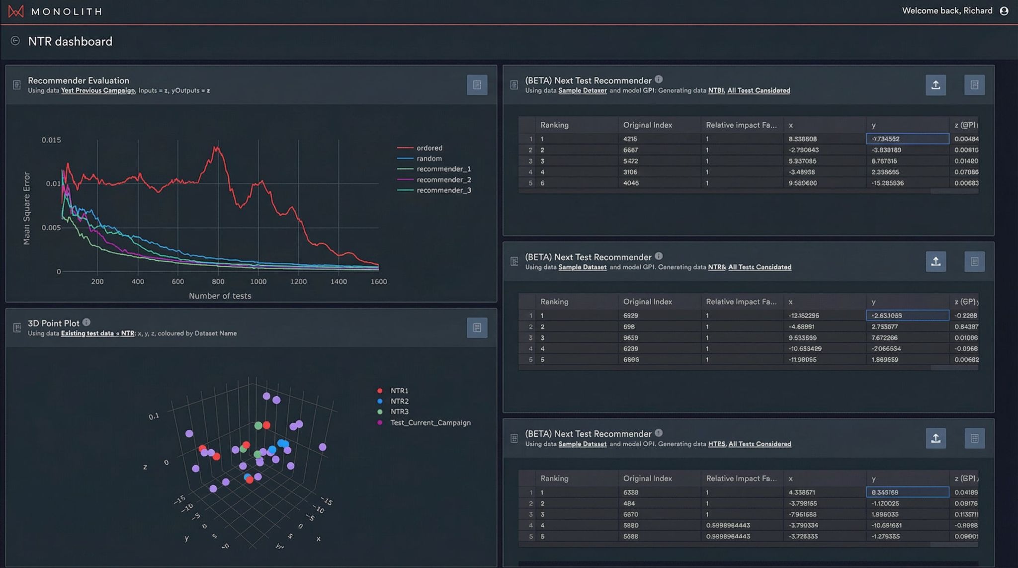 The first area was packaging the iterative method itself. In a research or consulting context, someone still has to decide which model family to use, how to represent uncertainty, and what rule should govern the selection of the next experiment. Those are meaningful technical choices, but they are not decisions most calibration engineers want to make before they can get any value. Productisation means pushing those choices down into the software. Instead of asking the engineer to select a kernel or compare several acquisition strategies, the product can run multiple models in parallel, combine their behaviour, surface disagreement or uncertainty, and then present a ranked list of candidate next tests. The user sees recommended operating points, not a menu of modelling assumptions. Monolith AI’s Next Test Recommender is a good example of this pattern. Across DoE, calibration, and related use cases, that sort of packaging has been associated with substantial reductions in campaign size and iteration time.