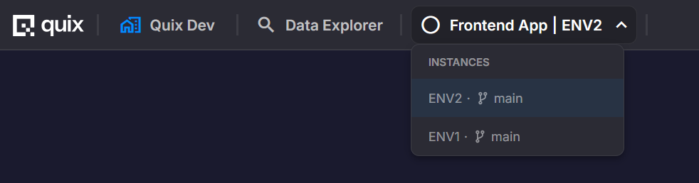 Global plugins appear in the top header of Quix Cloud and provide organization-wide access to a plugin's embedded UI, regardless of which environment or workspace is currently active.