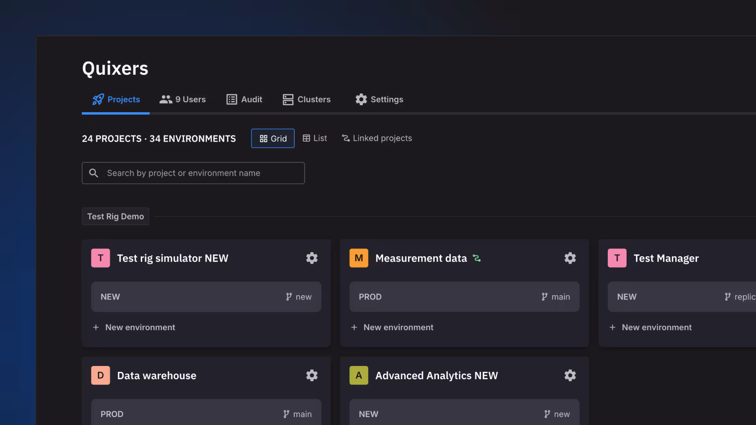 A managed service that searches, filters, and replays historical test data from QuixLake through processing pipelines. Select specific test sessions by time range or metadata tags, then reprocess them with updated algorithms, corrected configurations, or new models into existing or new projects without re-running physical tests or simulations.