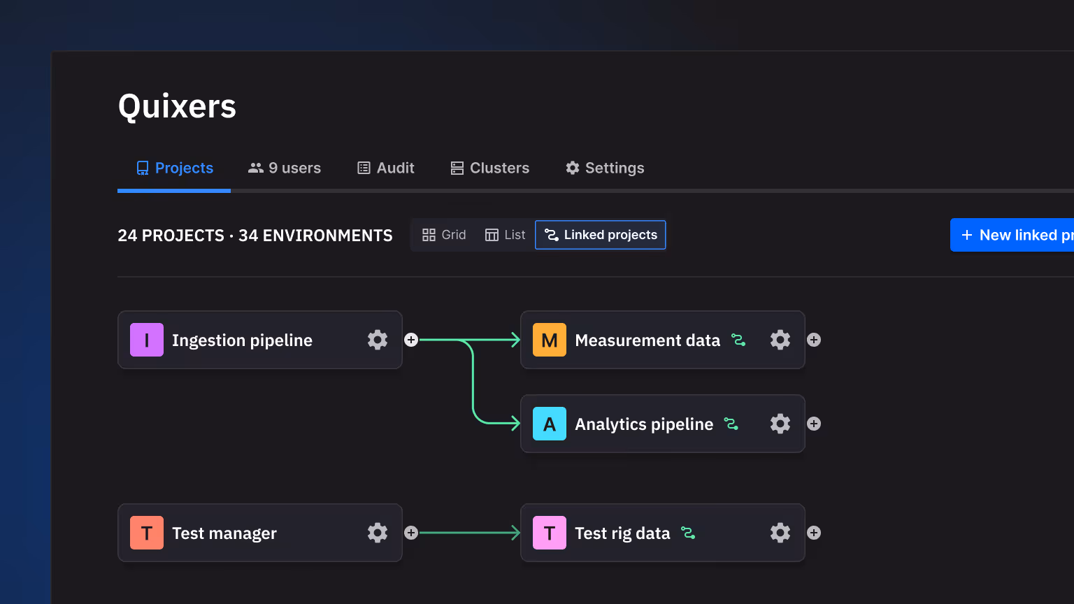 Project Links enable data sharing across project boundaries. Connect topics from one project as inputs to another, creating cross-project data flows while maintaining project isolation. A graphical view shows these connections, making it easy to see which teams consume your data and what upstream sources you depend on. This enables collaboration between teams working in separate projects while keeping project boundaries clear. Teams maintain autonomy over their own projects while safely consuming data produced by other teams.